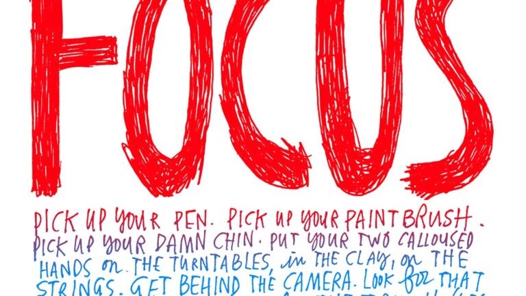 “Pick up your pen. Pick up your paintbrush. Pick up your damn chin. Put your two calloused hands on the turntables, in the clay, on the strings. Get behind the camera. Look for that pinprick of light. Look for the truth (yes, it is a thing—it still exists.)